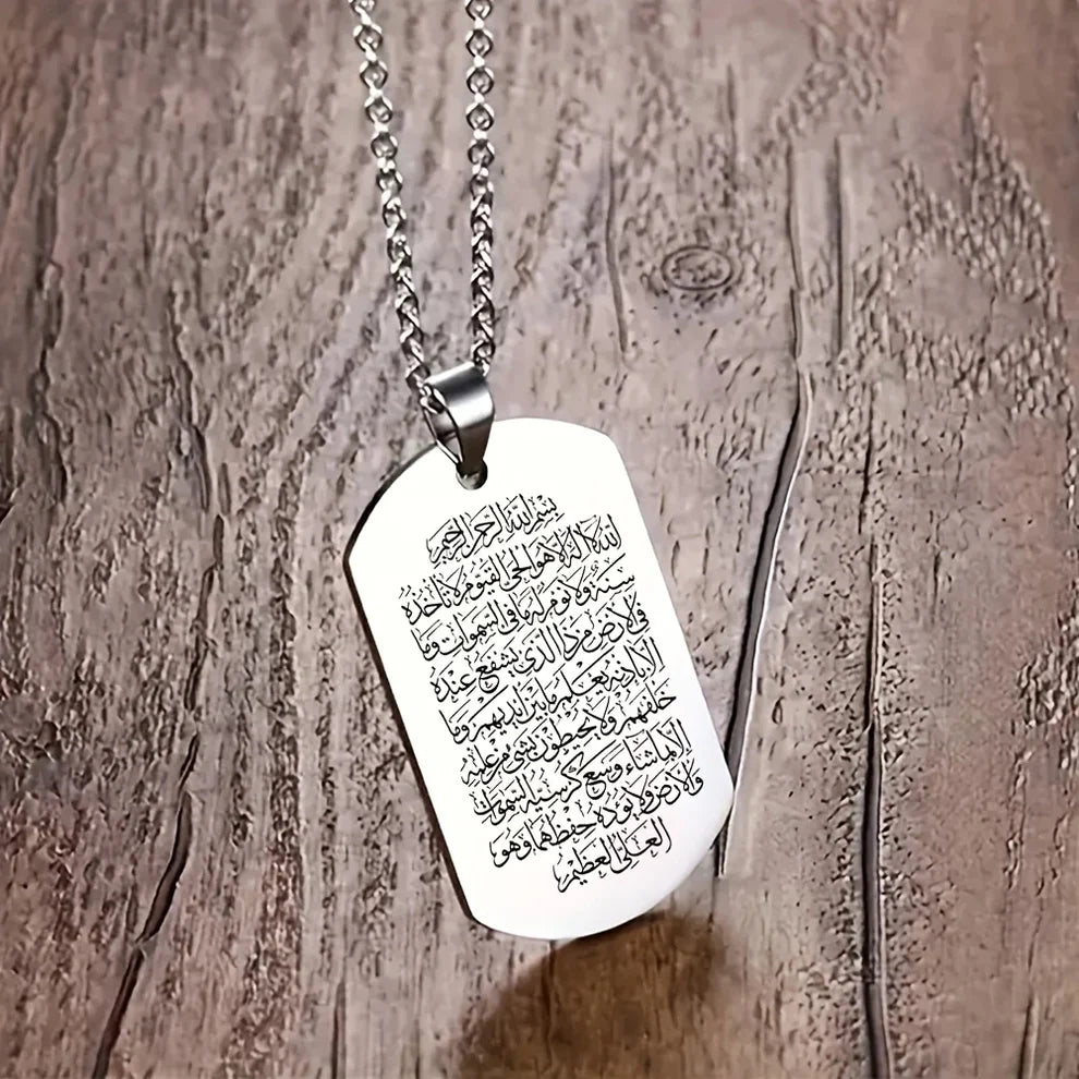 Crafted from high-quality stainless steel, the tag pendant is durable, tarnish-resistant, and suitable for everyday wear. Whether worn as a personal reminder of faith or gifted to a loved one, this necklace blends timeless Islamic tradition with modern style.