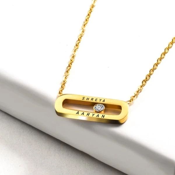 A pendant inspired by the circle motions of the infinite, the Eternal Pendant features zirconia on the face of it with 22 carat gold plated stainless steel all over it. Precise polishing and perfect engraving ensures it is made to last. Perfect engraving is done on the upper and lower sides of the pendant. The pendant comes with a standard 20 inch chain with an adjustable hook through which you can make it small (upto 18 inch)